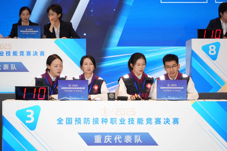 2025年11月10日-12日,由国家卫生健康委员会、中华全国总工会、国家疾病预防控制局联合主办,中国疾病预防控制中心、山东省疾病预防控制局及山东省疾控中心协办的全国预防接种技能竞赛在青岛圆满落幕。来自全国31个省(自治区、直辖市)及新疆生产建设兵团的32支代表队、共128名行业精英同台竞技,高手过招、赛况激烈。重庆代表队由巴南区疾控中心程运丹、渝中区疾控中心邵宇、观音桥社区卫生服务中心韩宁和渝中...