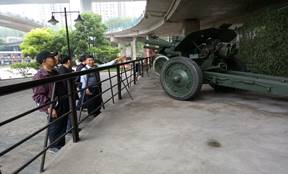 《重庆抗战文物博物馆》位于重庆九龙坡区谢家湾原“兵工署第一工厂旧址”的一处防空洞,洞外耸立着多门54式牵引榴弹炮、56式迫击炮,T-34坦克等武器庄严肃穆,栩栩如生。洞内陈列着上千件珍贵的抗战图片、文物和场景,这些抗战文物生动展示了全国抗战期间,中国共产党高擎抗日民族统一战线旗帜,领导八路军、新四军和抗日人民武装奋起抵抗、歼灭日本侵略军的英雄事迹;充分展现了在国家民族面临亡国之时,全国各族人民和爱国人士同仇敌忾、慷慨从军、共赴前线,浴血奋战的动人场景;以铁的史实再现了当年日本侵略者残暴、奸淫和屠杀中国人民犯下的滔天罪行;以大量的现场史料,记录了9万多兵工企业职工为支援抗战,在极度艰难的环境中昼夜凿洞建厂,制造兵器,为夺取抗战胜利作出的巨大贡献。