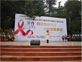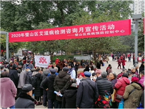 2020年12月1日是第33个“世界艾滋病日”。在全球抗击新冠肺炎疫情下,为加强各部门团结协作,携手应对新冠肺炎、艾滋病等重大传染病挑战,重庆市璧山区于11月30日在辖区内大成广场开展以“携手防疫抗艾,共担健康责任” 为主题的艾滋病防治宣传系列活动。区府办、区委宣传部、区公安局、区民政局、区教委、区卫生健康委、区中医院、区妇幼保健院和璧泉街道卫生院等9个单位和社会组织参与了本次宣传咨询、有奖问答和免费检测等系列活动。