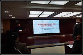 而后,周超科长就重庆市丙肝及性病疫情的现状进行了分析、重点针对丙肝、性病监测防治工作任务考核指标。就下一步性病暨丙肝防治工作及梅毒终期评估工作做了强调进行现场培训指导。最后,结防所所长郑轶对本区2020年已开展的性病丙肝防治工作及存在的问题进行了总结,就具体工作做了安排