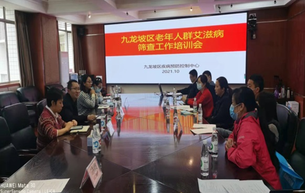 2021年10月20日,九龙坡区疾控中心组织召开了老年人群艾滋病筛查工作培训会,辖区内石桥铺街道社区卫生服务中心、中梁山街道社区卫生服务中心、九龙社区卫生服务中心、谢家湾街道社区卫生服务中心、铝城社区卫生服务中心等相关基层医疗机构10余人参加此次培训会。区疾控中心陶然副主任强调了老年人群艾滋病防控的重要意义,交流了好的工作方法,对老年人群艾滋病筛查工作作了强调和要求,并与相关单位签订了工作协议,为筛查工作打下了重要基础。