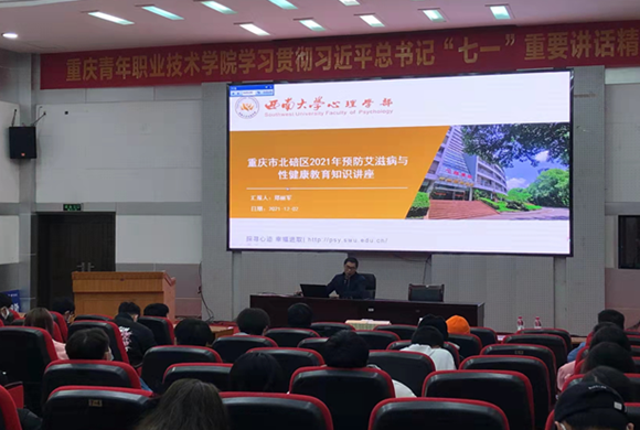 为了更好地宣传普及艾滋病、性病防治知识,提高青年学生的艾滋病、性病防治意识,在第34个“世界艾滋病日”前后,重庆市北碚区疾控中心与西南大学心理学部、北碚区中小学预防保健所和北碚区妇幼保健院协作,先后在北碚区翡翠湖小学、兼善中学、重庆市青年职业技术学院开展了3场艾滋病防治与性健康教育知识讲座。