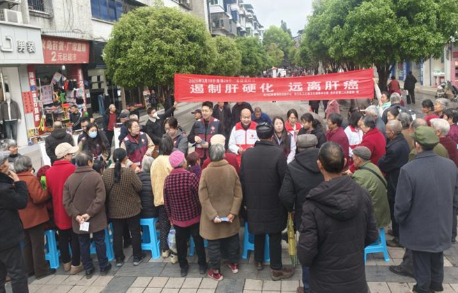 为普及肝脏健康知识,增强群众保肝护肝意识,切实守护人民群众身体健康,在第26个“全国爱肝日”来临之际,重庆市合川区疾控中心性艾科、健促科、医防融合科、传防科联合区第二人民医院,于2026年3月18日,在三汇镇开展以“遏制肝硬化,远离肝癌”为主题的集中宣传活动,以多学科协作模式,传递科学护肝理念,筑牢群众健康防线。
